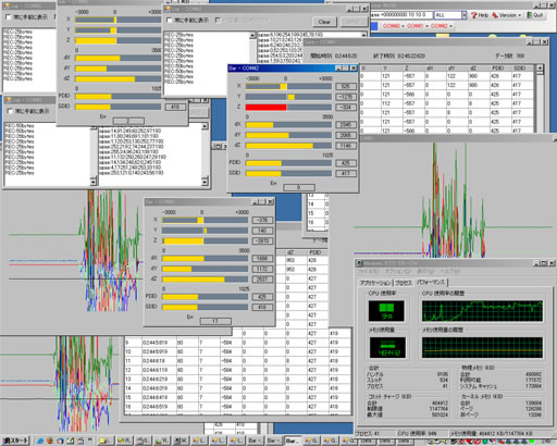 複数接続で,各々の全ウィンドウを表示して激しく動かすとこんな感じ.